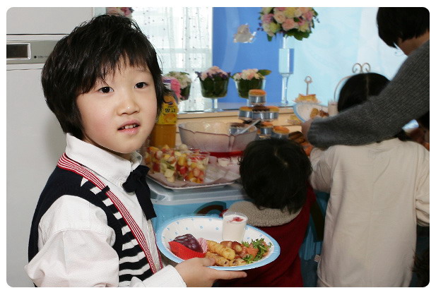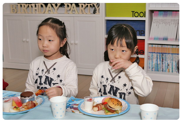 파티 꽤나 좋아하는 워니엄마와 원이 이모, 예쁜 그릇과, 파티용품, 일년에 몇번 쓸일 없는 3단 트레이, 머핀받침, 피나타 같은 것을 가지고 있지만 역시 명불허전 세환엄마와는 스케일 자체가 틀리다. 게다다 상차림은 상차림은 전문가인 세환엄마의 솜씨 답게 예쁘고 맛있기까지 하기 때문에 입은 칭찬과 음식을 음미하기 위해 가져가기만 하면 된다.
