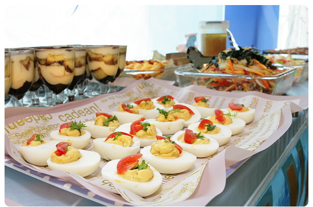 샐러드빵, 햄버거빵, 오늘의 치즈케익과 쿠키, 젤리, 햄버거빵, 샐러드빵, 베이컨떡말이, 야채샐러드, 하일라이트는 집에서 만든 티라미슈. 탕평채는 그간 후기가 좋았던 ㅋㅋ 워니엄마작품